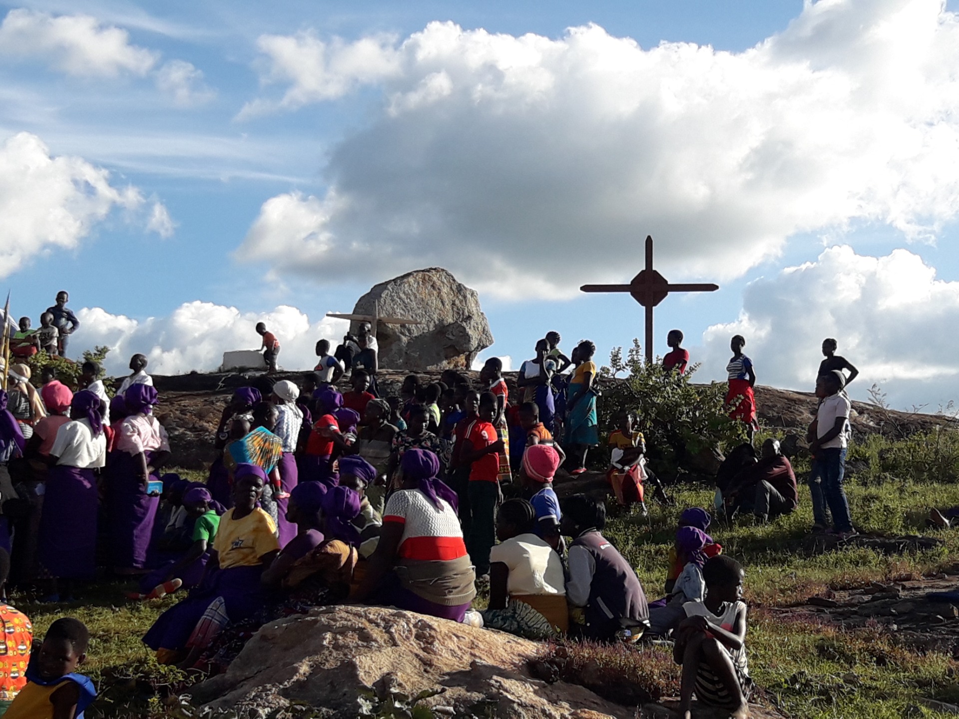 Das Ziel des Zuges, an dem sich schätzungsweise 400 Personen beteiligt haben, war ein sehr schön gelegener Hügel, der einerseits an Golgatha erinnerte, der aber auch durch einen auffallenden runden Felsen gekennzeichnet war, der mich an das Grab Jesu denken ließ.
